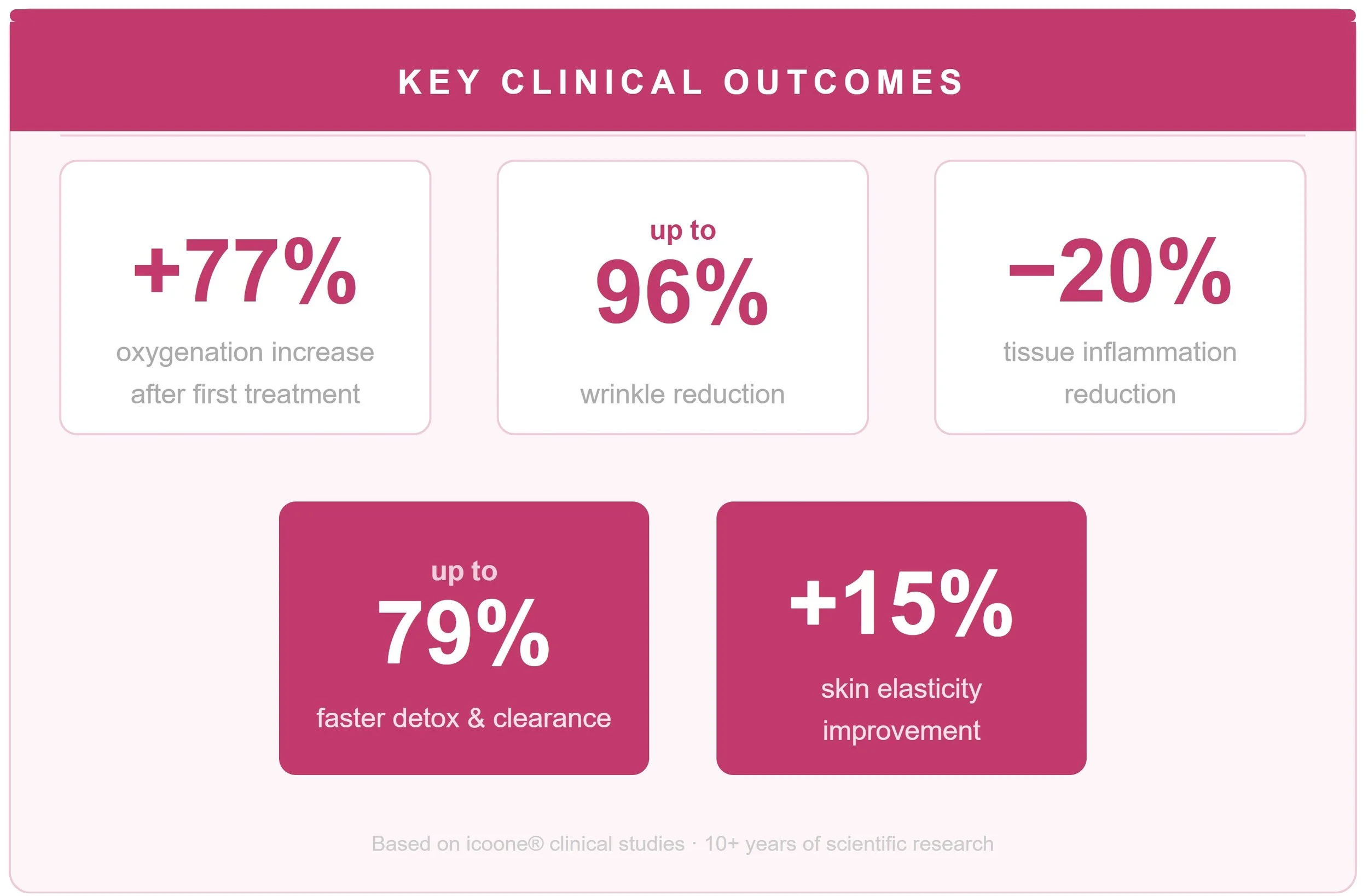 Most clients describe icoone® as a deeply relaxing, rhythmic sensation - like an intelligent massage that reaches beneath the skin. Completely painless. Surprisingly powerful. Many notice firmer, smoother skin immediately after their very first session.